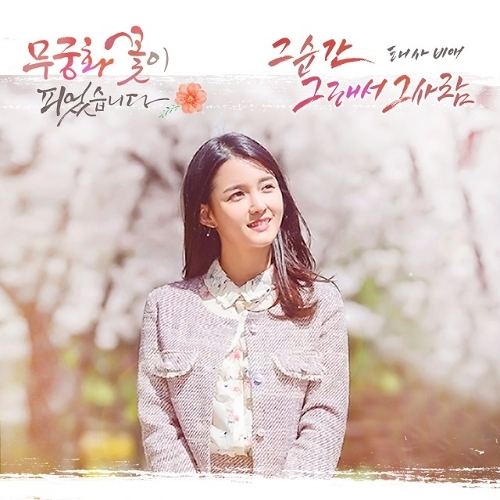 새로이 시작되는 KBS 일일드라마 '무궁화 꽃이 피었습니다'는 지구대를 배경으로 경찰 계급 조직 중 가장 '을'인 순경 무궁화가 다양한 '갑'들에게 한 방을 날리는 통쾌한 이야기를 그리는 드라마이다. "그순간 그래서 그사람"은 '태사비애' 멤버 'cind' 의 애절함이 속속들이 묻어있는 곡으로 한사람을 본 그순간 바로 그사람이 운명적으로 다가온다는 내용의 발라드이다. '태사비애' "죽을만큼 슬픈 사랑"의 뜻을 가지고 있는 만큼 그 애절함은 그 어떤 가창자 들과 비교를 할 수가 없다. 이번 곡 "그순간 그래서 그사람"은 요즘 태사비애 전담 작곡가라 할만큼 가장 많은 호흡과 가장 많은 발매로 큰 사랑을 받고있는 천재 작곡가 '손이삭'과 작사가 '김성채', '황은지'의 환상적인 호흡을 기대해 보자.